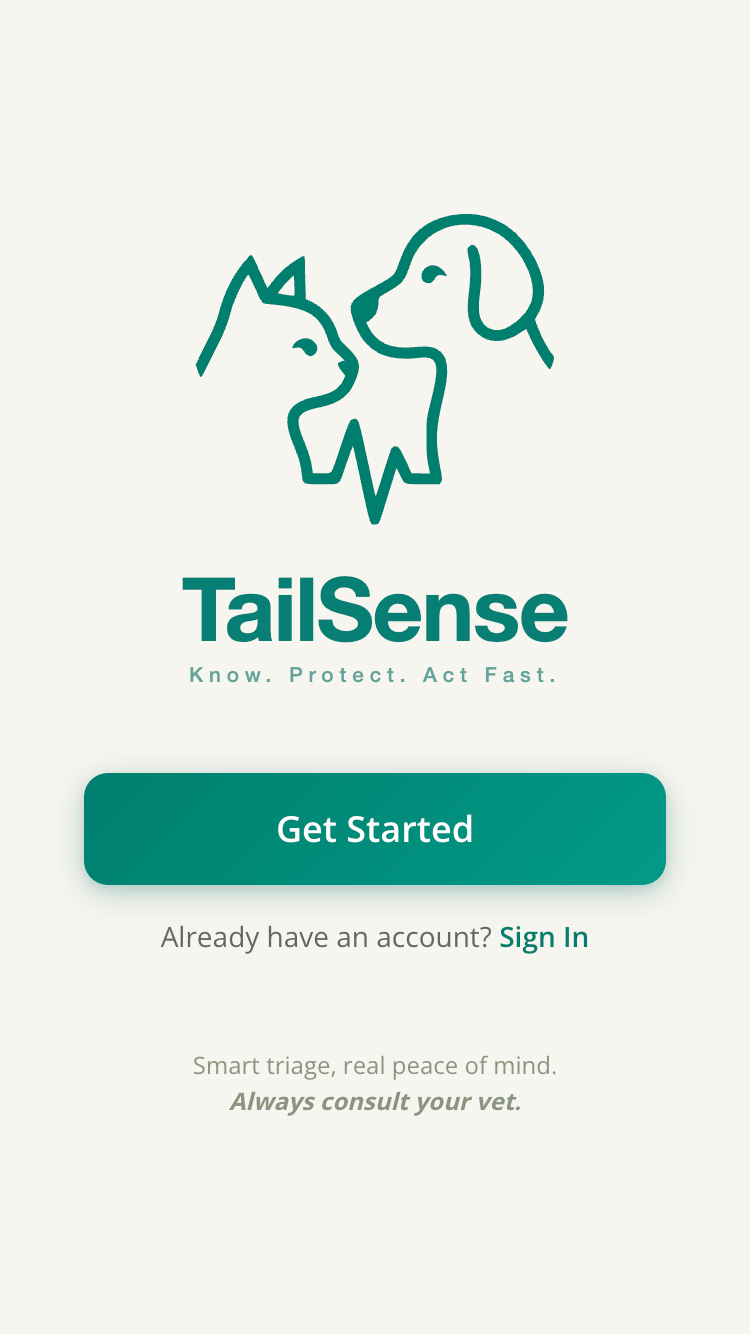At 2am when your pet is acting strange, TailSense helps you assess symptom urgency, know what to watch for, and prepare a vet-ready summary — all in minutes.